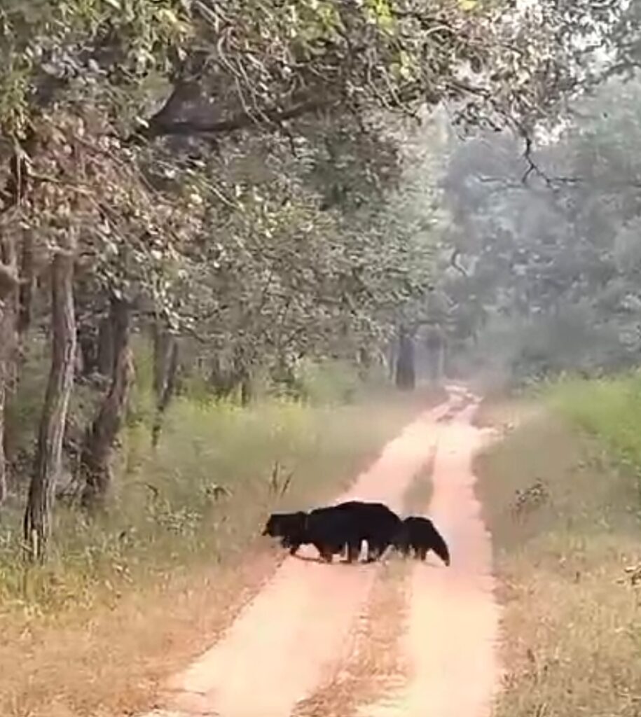 बाघों के गढ़ में बच्चों के साथ भालू का दीदार…रोमांचित हुए पर्यटक…बांधवगढ़ टाइगर रिजर्व के मगधी जोन का मनमोहक दृश्य…
